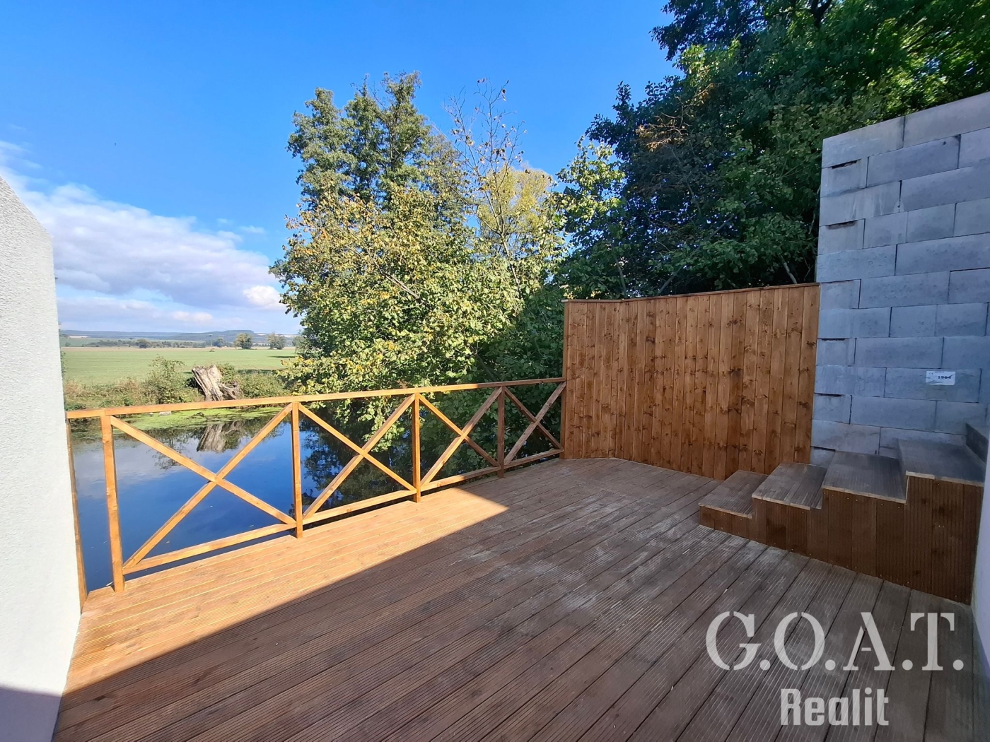- Dřevěné molo nad řekou – originální místo pro ranní kávu, čtení, opalování nebo letní koupání